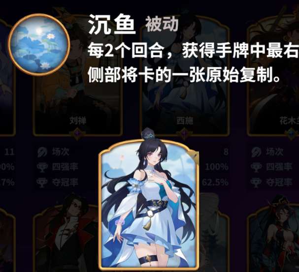 西施的技能从第一回合开始,每单数回合复制手牌最右侧的卡