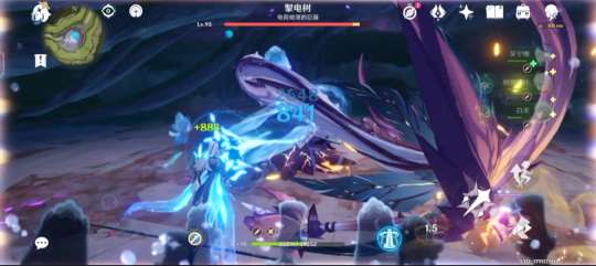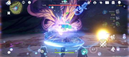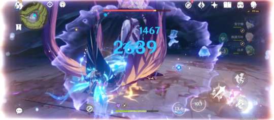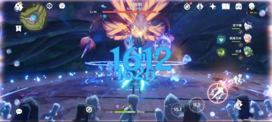 那维莱特作为主c开始输出。那维莱特重击蓄力最多吸收3个源水之滴,可以“秒蓄”手法,按下普攻键触发重击后在短时间内松开,可以明显减少蓄力时间。使用鼠标时可以拉高灵敏度“开转”,手机端玩家或者不想调节的,实战中左右摇晃也能造成不错的群体攻击效果
