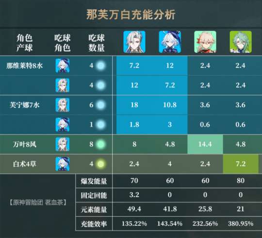 那维莱特严格循环需要一定充能,实战中队伍伤害高,怪物掉球充能还是比较容易的;芙宁娜也需要一定充能不过要求较低。万叶、白术元素爆发不一定要释放