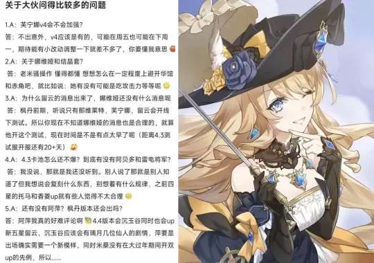 4.4卡池的留云可能也是最近会让玩家感到困惑的。明明说是娜维娅在4.3卡池中,但还是没有任何相关消息,反而传出了不少有关留云的消息。也有传言称,只有那维莱特、芙宁娜和留云参加了线下测试。距离4.3测试服还有20多天,现在没有任何相关消息也是很正常的。