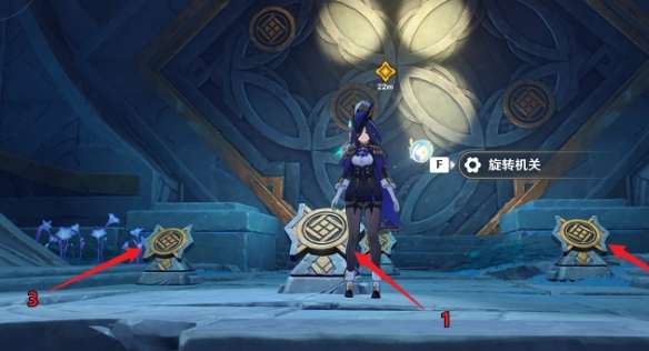 后面跟着指引往前即可,我们来到大门处后按图中顺序分别旋转一次机关即可打开大门。