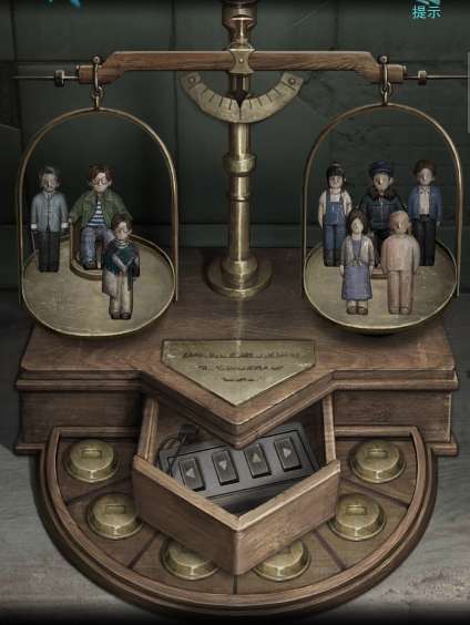 4. 回到监狱,使用警棍可获得门口和窗外的两个人偶,将获得的所有人偶都放在左边的天秤上,根据以下方式放置人偶,获得小键盘。