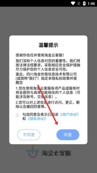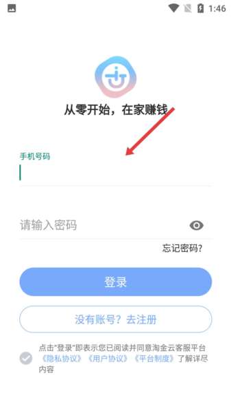 软件提交 专题合集 热门手游淘金云客服app用什么注册,下载安装完成后进入,需在用户协议和隐私政策界面点击同意,接受相关条款后才能进入应用,登录界面,用户可输入手机号码和密码登录,也可选择注册账号,底部有相关协议的勾选框,方便用户快速进入。