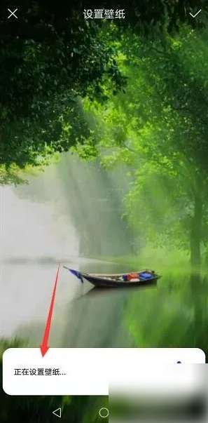 5、选择设定之后,页面下方就会显示 正在设置壁纸,如下图