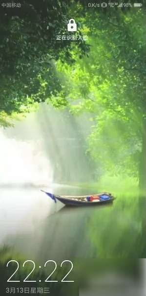 6、设置好之后退出回到手机页面锁屏之后就可以看到刚刚设置的壁纸啦,如下图