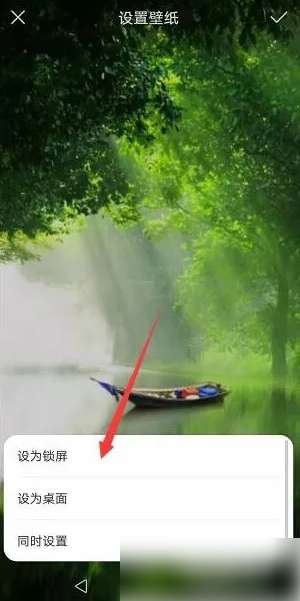 4、点击应用之后在页面右上角点击打勾,然后页面下方就会出现选项,设为锁屏或桌面或同时设定,如下图