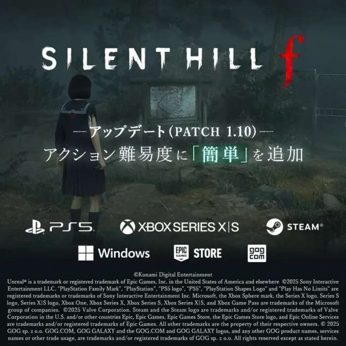 11月13日,《寂静岭f》发布1.10版本更新,正式新增“简单”难度与章节跳过功能。玩家可在主菜单开始“新游戏”或“新游戏+”时直接选择简单难度,若在更高难度下游玩时多次失败,系统也会提示切换至简单模式,以降低剧情体验的阻力。