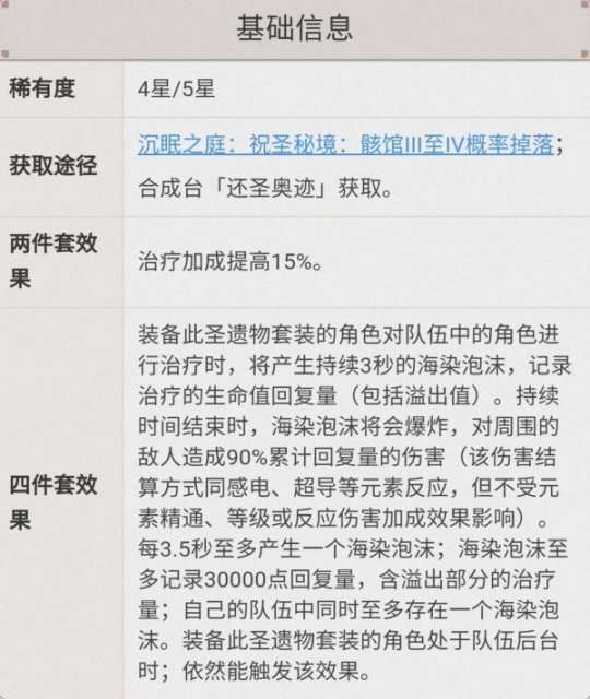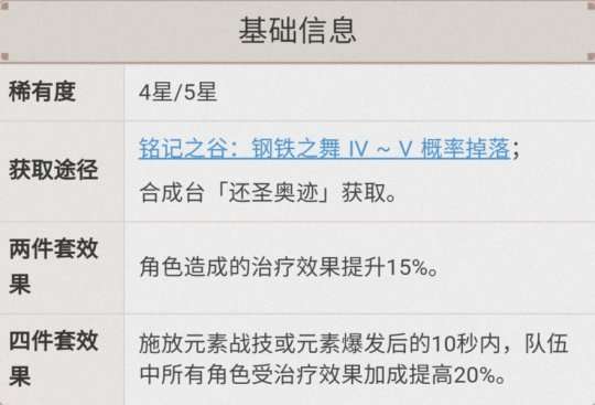 这套圣遗物的亮点是在有治疗加成词条的同时,具备一定的补伤能力,虽然不多,但聊胜于无吧