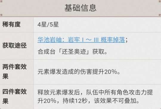 和海螺之歌套装相比,这套圣遗物的补充伤害是加在基础伤害区间的(机制可以参考申鹤的冰翎)。使用这套圣遗物时需要注意,补充伤害的效果是全队共用的,如果角色没有增伤、双倍暴击率等buff,就很容易失去补充伤害次数。因此,在使用时需要相当小心。