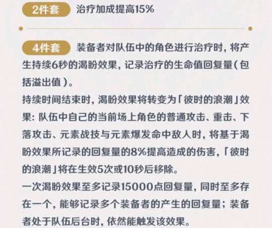 这是奶量最高的一套圣遗物,追求极致奶量的可以携带,主打一个安全感