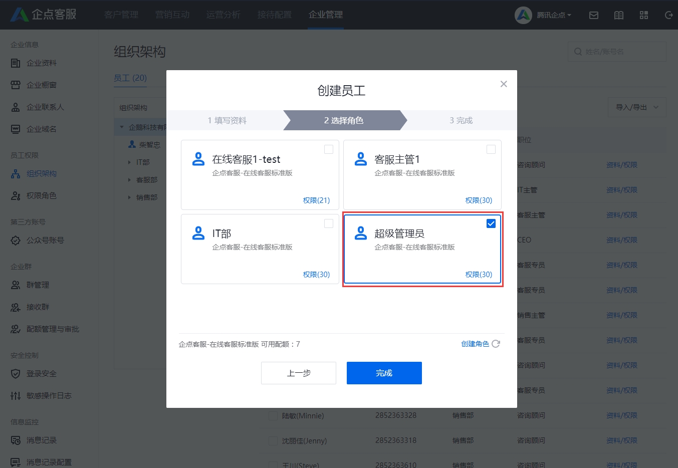 4、点击“完成”后,该名员工即创建成功。