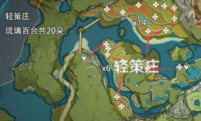 轻策庄大家可以按照以下路线进行采集,合计也是20个琉璃百合刷新点。