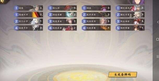 造价为橙卡1张(名门公子-非必须没有也不影响),红卡0,其他都是白卡紫卡之类。完全不用氪金或者抽什么必须卡。我从天位上圣位胜率有七成,也可能跟我遇到的对手都是新手吧?。大佬就当看个乐,我只是为萌新提供一个思路,不用非争什么。下面讲解卡组: