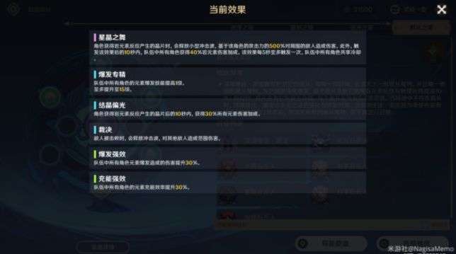 砂糖:但是钟离的大又有个问题,它在天星落下前会击退身边的怪,当你施放角度不好时,就会出现本来在范围内的怪被击退到范围外了,心态炸裂。因此我选择砂糖起一个聚怪与控制的作用。虽然温迪也可以,但温迪一般能搭出更好的队伍,因此不提。注意砂糖要带个充能沙漏,不然充能不够。