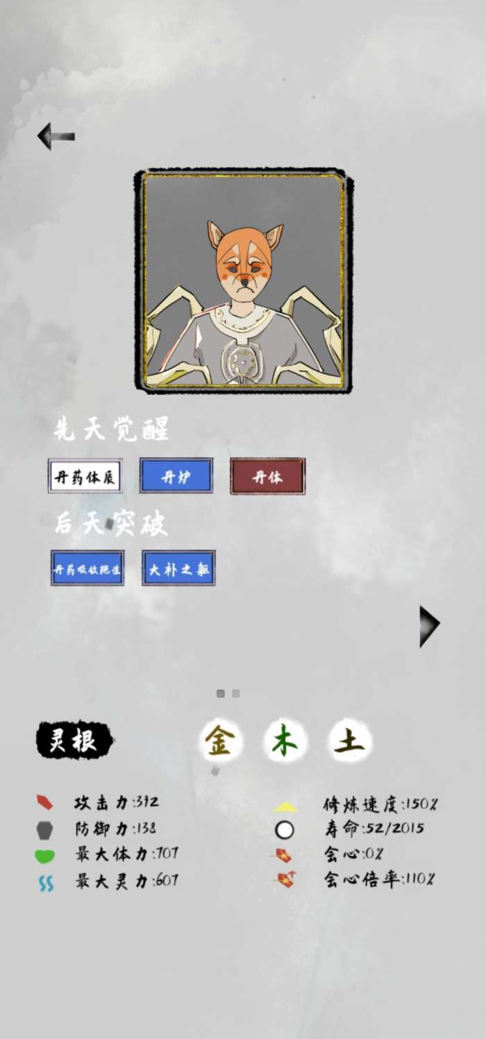 丹药:通常是要前几世帮忙囤丹药传承,留“+X”的丹药,而“+X%”的丹药看情况。最重要的就是寿命的丹药,活下来是游戏的核心。其次的攻击、防御就看流派了。至于体力、灵力、速度、会心,甚至天谴,因人而异。反正最后只能传承三种丹药,数量不限,还要注意大多有耐药性,大家自行选择。