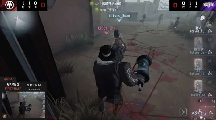 上半场Wolves战队求生者4出0抓拿到胜利。