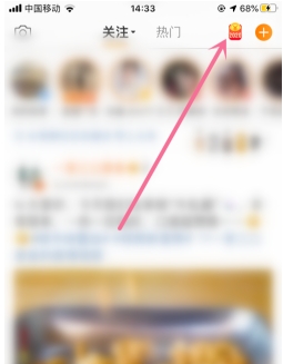 1、打开手机微博,进入页面,点击右上角的“2020的小图标”;