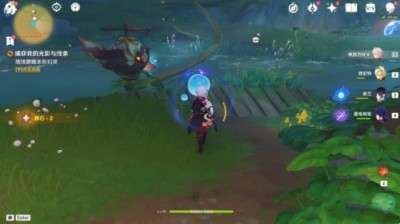 解开三号后往东方向的山洞跳下去就可以看到四号水珠,依旧是跟随指引前进即可,路上需要击败碰到的怪物,最后搭乘飞车解开最后一座【聚流映灯】。