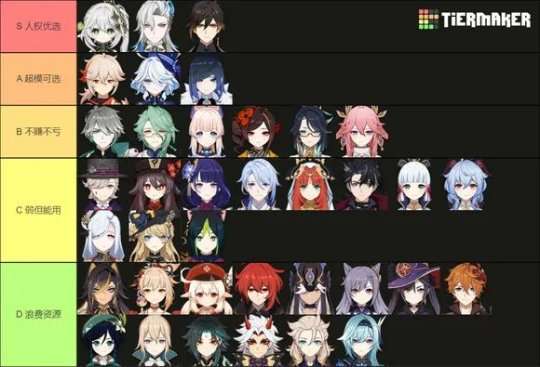 这个榜单我个人认为是很合理的,草神钟离和水龙王确实是0-2命里最好的三个选择,夜兰排在了第二档也合理,毕竟万叶水神都在这一档,目前游戏里最强的三个增伤辅助角色。