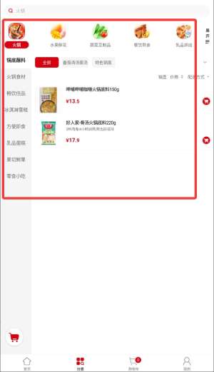 2、进入程序首页后,在商品分类区根据需求选择生鲜食品或日用百货等品类。