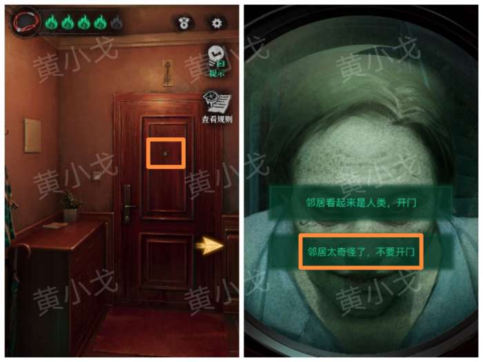 28.查看猫眼,选择〈邻居太奇怪了,不要开门〉(有小高能)