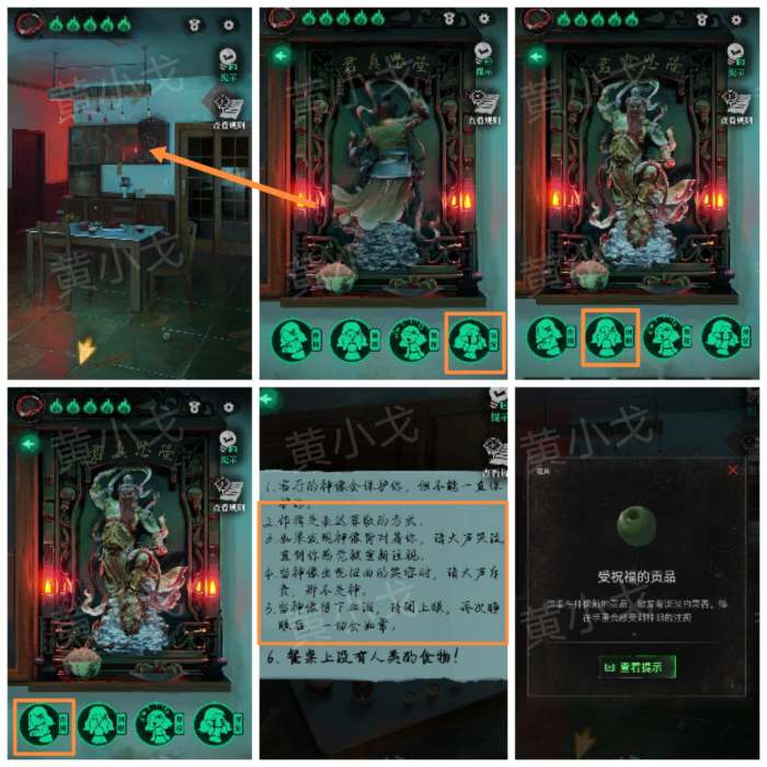 6.点击神龛,根据神像变化和规则上的线索,做出选择,获得【受祝福的贡品】