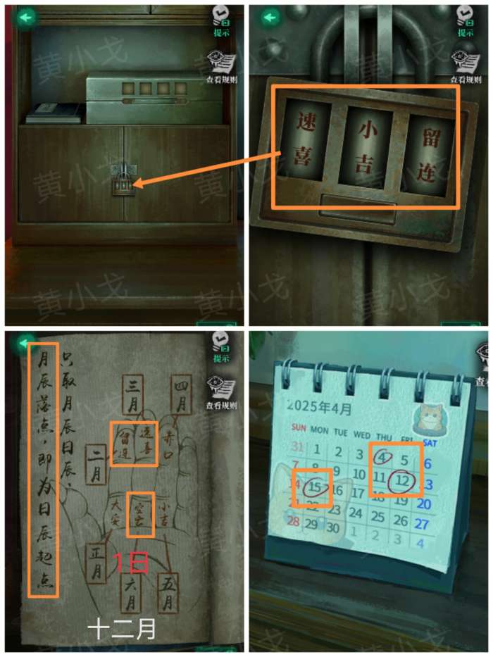 10.点击柜子上的密码锁,根据日历和《小六壬图解》上的线索,调整密码锁