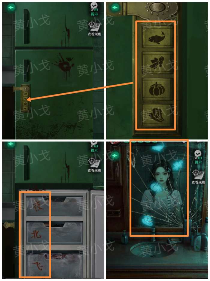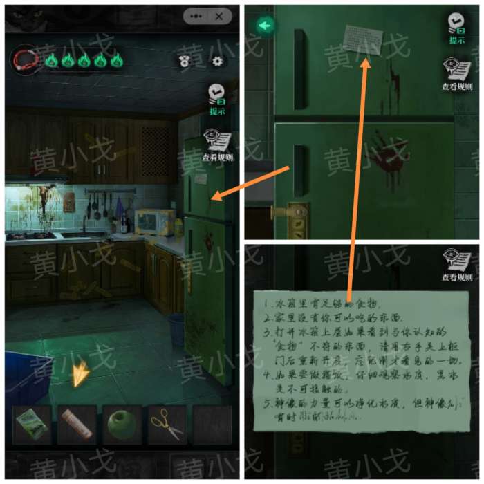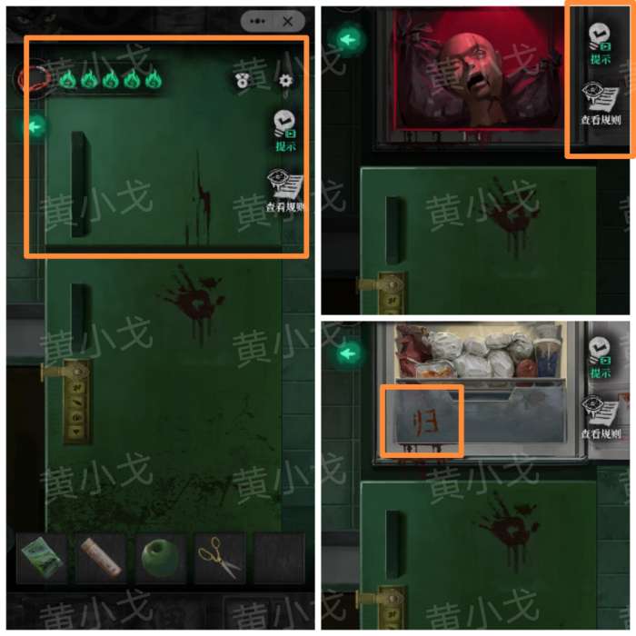 17.打开冰箱冷藏层,里面有人偶头,根据规则,关上门再打开,获得线索