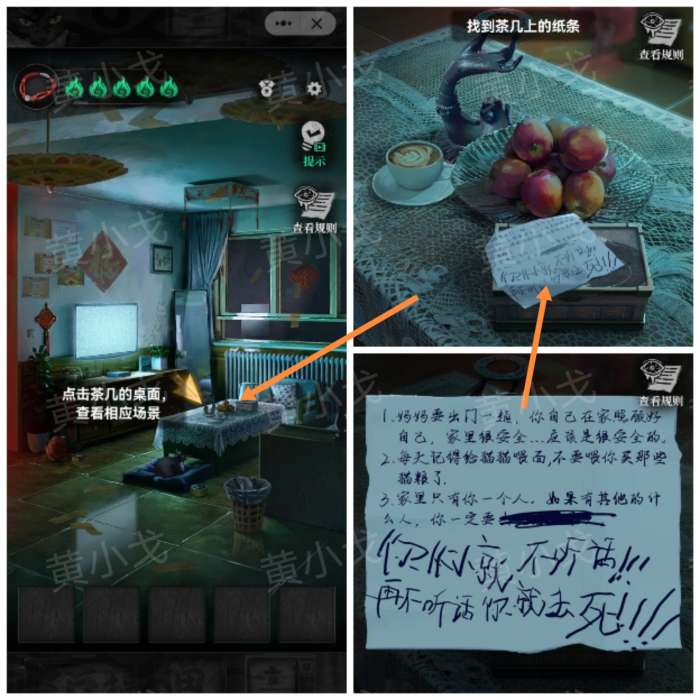 1.查看茶几上的纸条