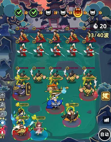 该阵容在应对高速推进机制时表现稳健。实战数据显示,当张飞等级达到12级时,队伍有较大概率成功通关第29波敌人。而第25至29波之间即为收益拐点——此时累计可获得徽章奖励达50枚,投入产出比处于高位区间。若追求更高层数与更优奖励稳定性,则需进一步提升主力武将的品质星级,从而夯实整体战力基线。