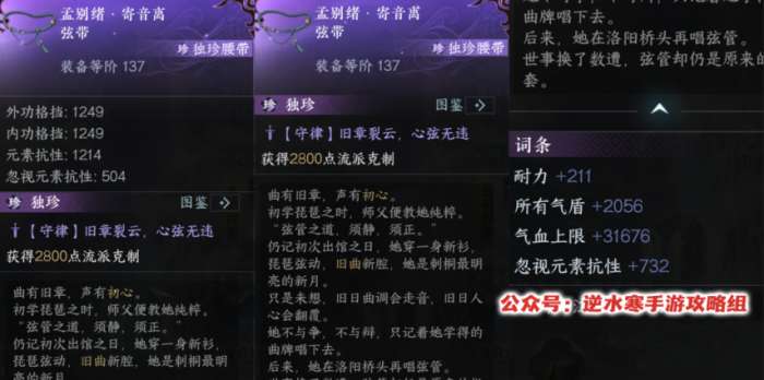 (1)孟别绪·寄音离弦带独珍说明:137装等PVP腰带,独珍效果是提供2800点流派克制。后续可加工成139装等,加工材料·墨曜黯晶在扬威商店兑换(7月14日开放兑换)。
