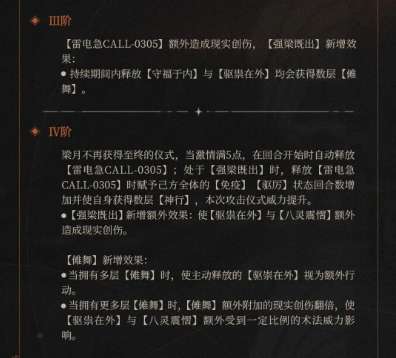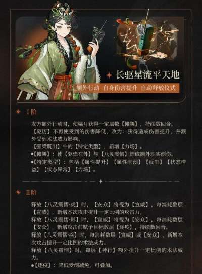 梁月狂想后新增傩舞机制,友方额外行动或者强梁既出状态下释放1、2技能可以叠层:傩舞可以提供以下效果: