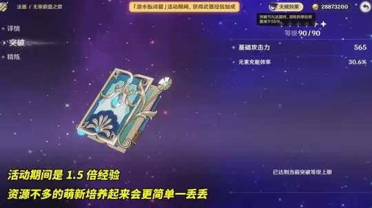 针对4.1版本新增的两个法器角色来说,虽然无垠蔚蓝之歌可以使用,但它只是过渡性的选择。这两个角色都有更强的锻造武器可供选择。无论是试作金珀还是纯水流华,只要花费一些时间在野外挖矿,就可以较为轻松地打造出满精。