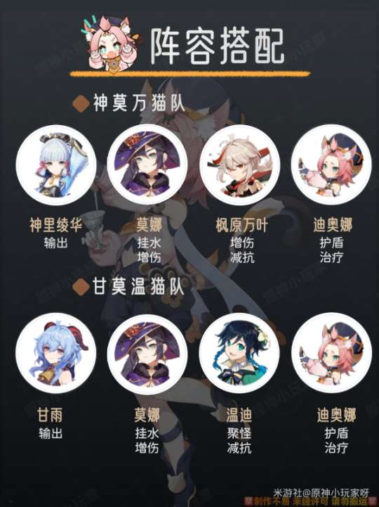 ① 神莫万猫队: 神里绫华+莫娜+万叶+迪奥娜