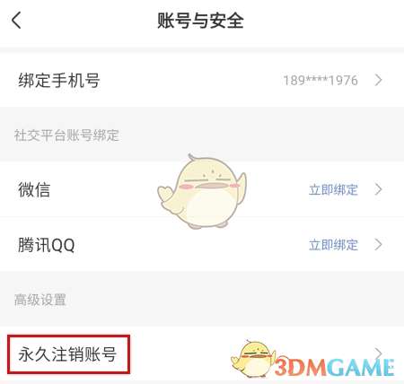 1、在账号与安全页面中点击永久注销账号按钮;