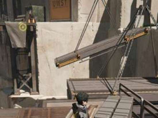 跳上平台与机器互动后,界面会显示左右移动选项。选择相应的方向就能操控吊机移动空中悬挂的建材位置。将建材移动到合适位置后,原本的鸿沟会被填平形成可通行的道路。完成这一步后就能继续前进,顺利抵达档案库完成任务。