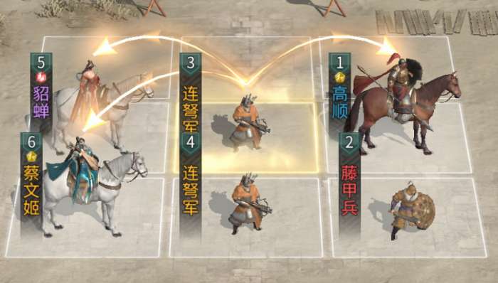 三个英雄的追击格均给到阵容中心的连弩军,让连弩军来承担队伍的输出。这个阵容对英雄品质的要求极低,并且有很不错的强度,非常适合平民玩家上手。