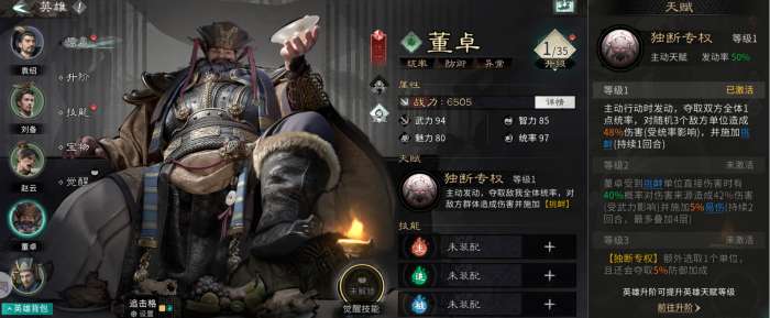 与吕蒙、高顺等保护型坦克不同,董卓是辅助型坦克,除了挑衅以外,没有其他保护友军的能力,不过等级二、等级三的天赋可以给敌军施加减益状态,能进一步提升团队的整体输出能力。