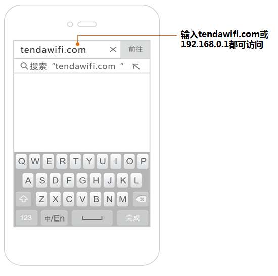 在手机上打开浏览器,在地址栏访问tendawifi.com或192.168.0.1(注意:请不要使用百度搜索),如下图所示: