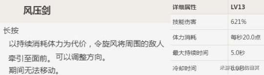 这个技能会造成大量风属性伤害,并根据使用者的攻击力高低回复一定量的血量。此外,在接下来的10秒内,每秒还能持续回复少量血量。而且,当敌人进入或离开某个领域范围时,都会受到风属性伤害的效果。
