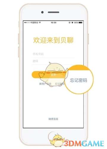 1、打开贝聊,多次输入密码都提示错误,可以点击登录下方的忘记密码。