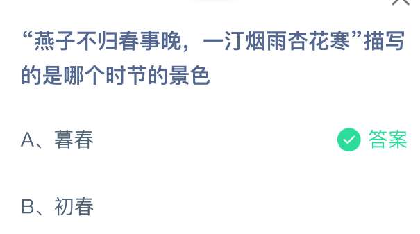 以上就是“燕子不归春事晚,一汀烟雨杏花寒”描写的是哪个时节的景色?支付宝蚂蚁庄园2026年3月19日答案最新,更多相关攻略,请关注pk游戏网更新!