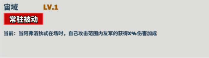 描述: 当阿弗洛狄忒在场时,自己攻击范围内的友军获得X%伤害加成。