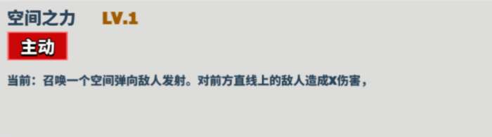 描述: 召唤一个空间弹向敌人发射,对前方直线上的敌人造成X伤害。
