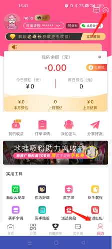 1、打开软件,点击底端的“我的”选项,点击“设置”按钮。