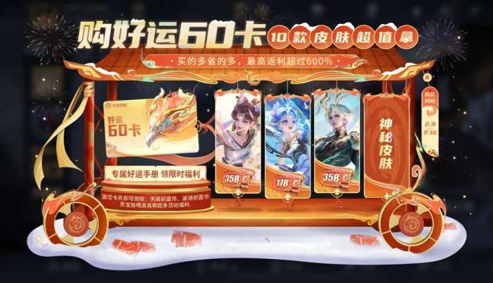 2月9日好运60卡除夕特惠价680点券,2月10日-2月18日售价880点券,购买后可以获得十张新皮肤专属优惠卡。