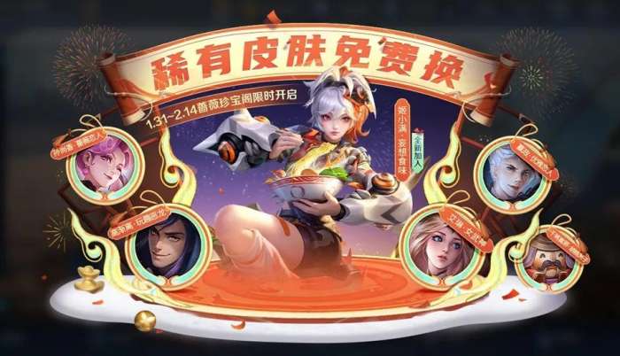 活动时间2月9日-2月12日,商城直售英雄限免,刘备-时之恋人、李元芳-飞莺探春、铠-绛天战甲等十四款皮肤限免使用。
