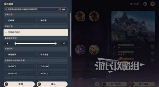 在开始演奏前也可以点击下方筛选按钮,找到可以获得千音币的曲谱。