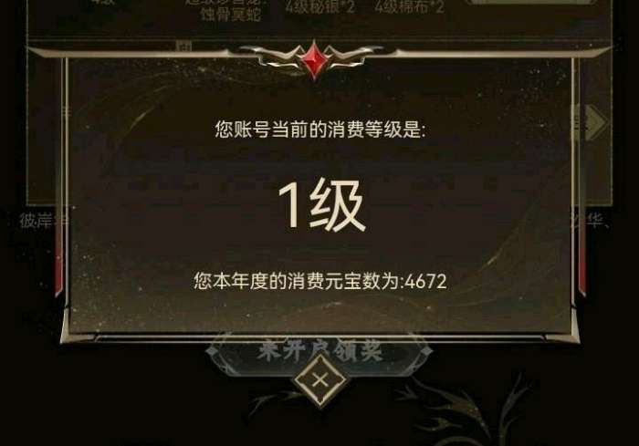 他还晒出了自己的消费等级,年度消费仅仅4672元宝!