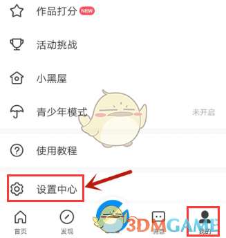 2、接着在我的界面找到“设置中心”选项,点击它,接着会进入到设置界面。